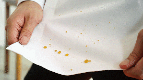 生地の表面張力を下げて服に食べ物をこぼしても跡がつきません。