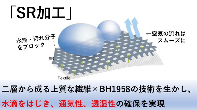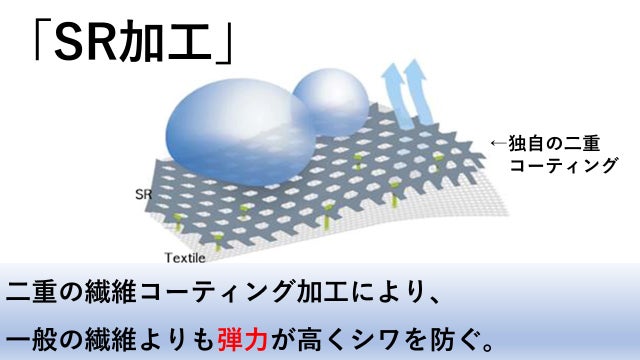 SRとは、「Soil Resistant Finish」の略字で、「防汚加工」という技術です。