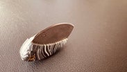 曲線で構成された葉のようなフォルムと、金属と繊維のコンビネーションが柔らかく、アクセサリーやお守りのような存在感に仕上がっています。