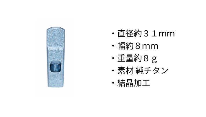 - 表面に結晶加工を施し、チタン特有の風合いを活かした仕上げ。