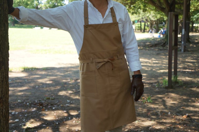 このレザーエプロンをかけるだけでアクティビティのギアがグっとあがる・・・