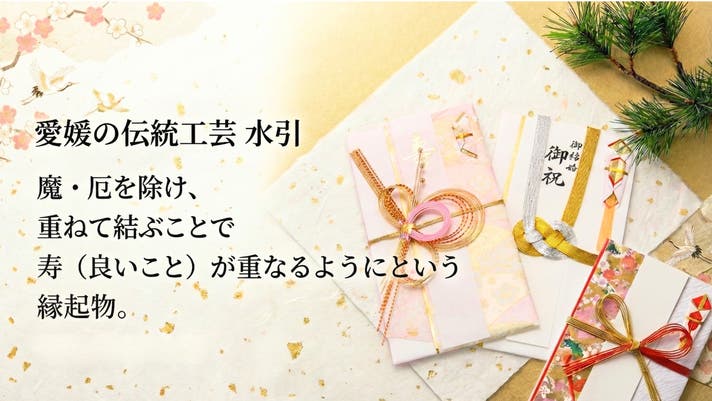 愛媛県は、日本有数の「紙のまち」であり、紙から作られている水引もまた、愛媛の産品、伝統工芸品として知られています。
