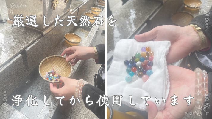 これから長い付き合いになる天然石ですから、商品をお作りする前に、石をしっかりと浄化しています。