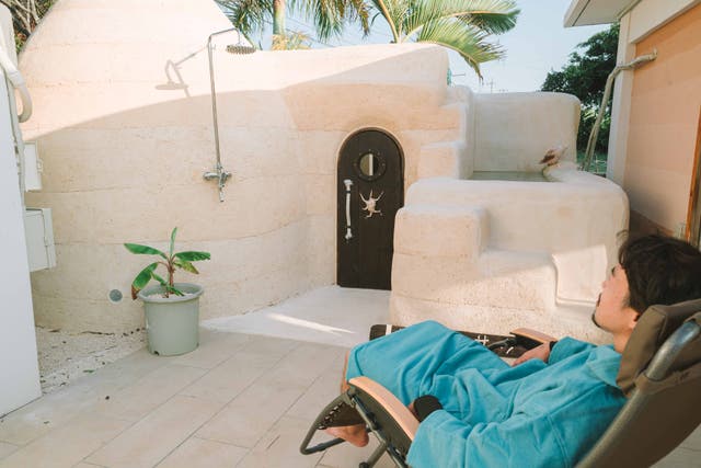外気浴はサウナを作った一番のポイントで宮古島の風、空気、音を存分に味わえ、幸福感を感じて頂く瞬間となります。