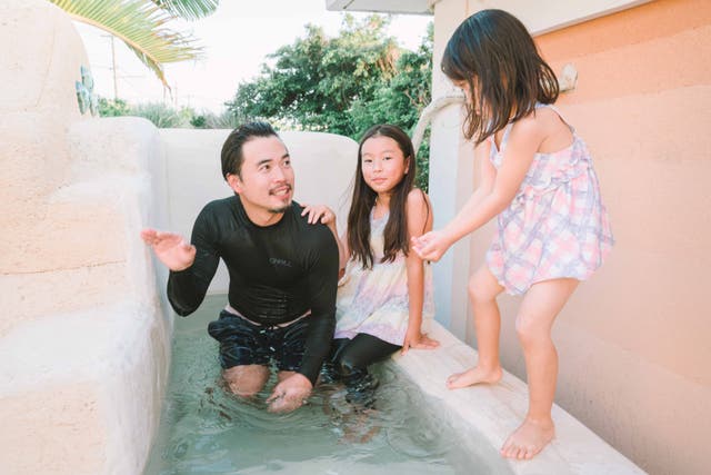 私は高校まで広島で育ちました。幼少期より体が弱かったこともあり、生活していく中でより良い環境に身を置きたいと考えていました。そんなことを考えながら大学生のころからオーストラリアやバリなどの南国を行き来しているうちに日本でも暖かく空気のきれいな場所に住みたいと巡る中で宮古島に辿り着きました。 そして宮古島で生活しているうちに、綺麗な海はもちろん空気の綺麗さや豊かな海の幸や植物・果物などたくさんの魅力を感じました。そんな環境の中で「この魅力をより多くの人に体験して欲しい」との想いを胸に約8年前に民宿「ゆいゆい」を開業しました。