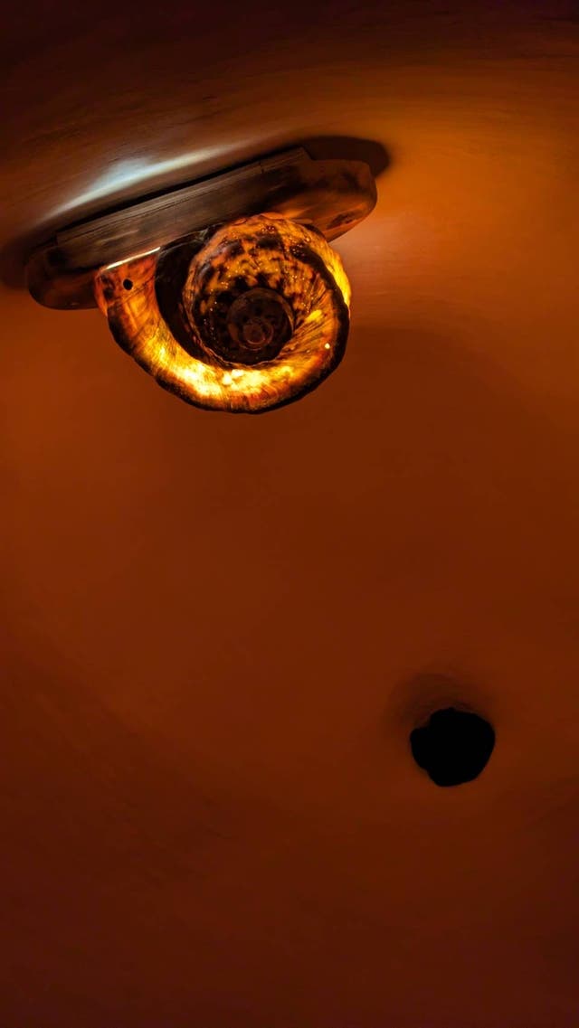 宮古島の海で獲れた『夜光貝』のランプも手作り