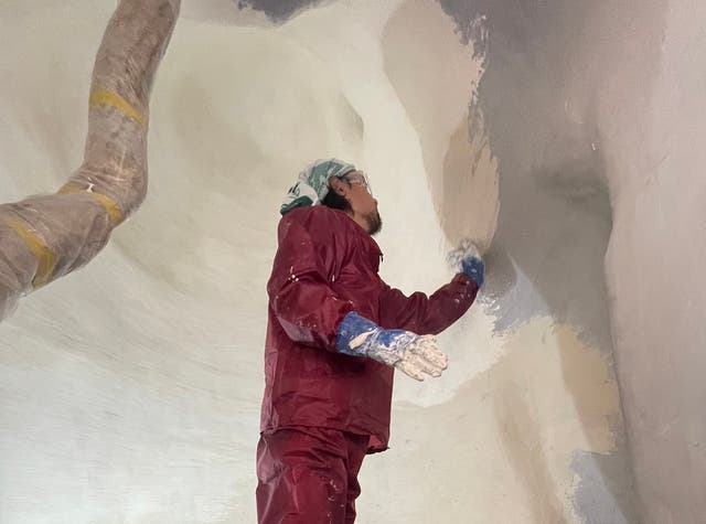 その上に珊瑚から作られた素材を塗って仕上げてます。塗り立ての時は海の香りが漂ってました。凛とした空間に仕上がりました。