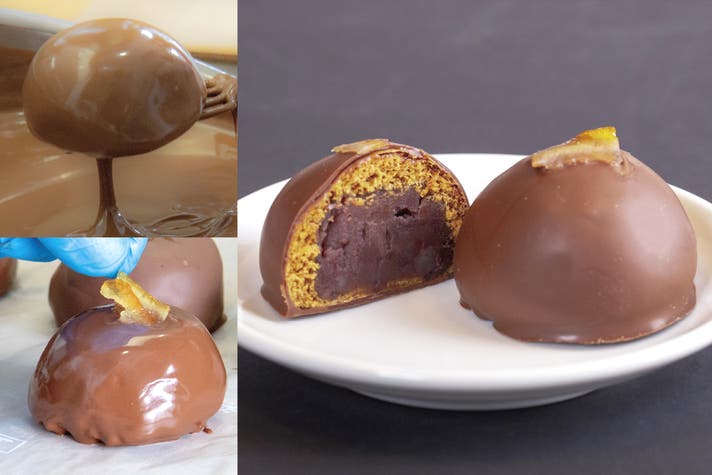 丸いチョコレートの外見からは想像できないほど、ひと口ごとに新しい味の驚きが広がります。 濃厚なチョコレートに包まれた饅頭が、しっとりした餡とふわっとした生地と融合し、絶妙な食感とともに贅沢なひとときを楽しませてくれます。 オレンジピールの爽やかなアクセントが、チョコとあんこの甘味に深みを加えます。