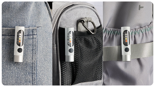 Yulashにはミニクリップ付き、バッグやポケット、ベルトに引っ掛けることができます。デスクの上などの平面に置く時もより転がりにくい!