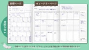 本文ページ仕様:扉ページ、目標ページ、記入例ページ、ウィークリーページ(28週)、ドットノートページ(70P)、奥付ページ