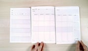 手帳が紙であることの利点を最大限に活かした、見開き式デザイン。折りたたんで収納できる目標ページは、手帳のどのページにいても、同時に開いて見渡すことができます。