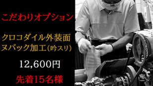 数量限定オプションにて、外装面に使用するクロコダイル革の部位をお選びいただけます。