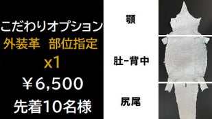 数量限定オプションにて、外装の表面に使用するクロコダイル革の部位をお選びいただけます。