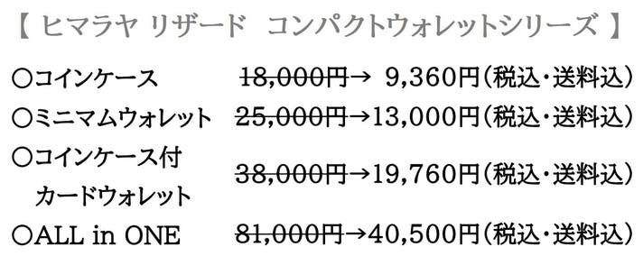 ・ヒマラヤリザード コインケース、ミニマムウォレット、コインケース付カードウォレット各1