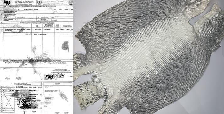 本プロジェクトで採用した革は、野生生物保護のもとで飼育され、『ワシントン条約=CITES』により適正に輸入された『リザード』の革となります。