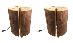 一つ一つ丁寧に作られた屋外用の丸太照明。手作り品のため、独特の風合いを感じられる作品となっています。