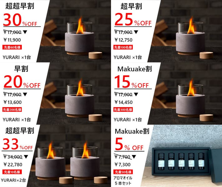 「Makuake(マクアケ)」は、実行者の想いを応援購入によって実現するアタラシイものやサービスのプラットフォームです。このページは、 プロダクトカテゴリの 「アロマの香りとゆれる炎がやさしく五感を包み込む。あなただけのやすらぎの時間。」プロジェクト詳細ページです。