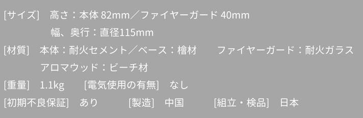 ■付属品:本体/燃料カップ/消火用蓋/アロマウッド