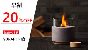 『 YURARI 』は、煙や匂いをほとんど出さない“バイオエタノール”燃料を使用。焚き火に付きものの煙やニオイの心配がなく、室内でも快適に使えるのが特長です。
