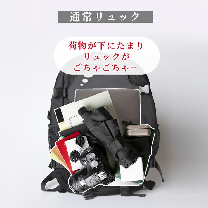 荷物が下でゴチャつかない!3階建て収納で整理整頓できる【薄型リュックインバッグ】( 2023年12月)