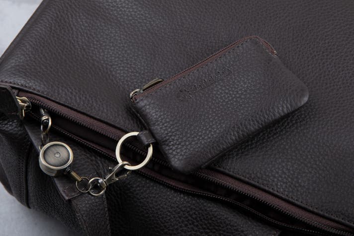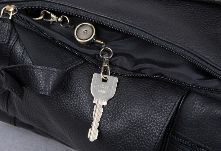 リールキーホルダーも付属しており、鍵は取り出さずにスマートに使用できます。