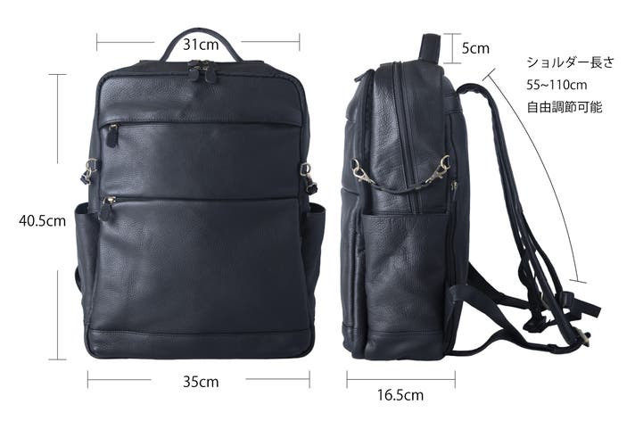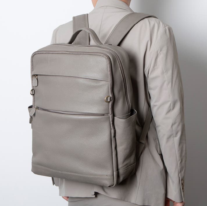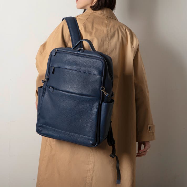 シュリンクレザーを使用したこのバックパックは、傷や汚れに強い仕様です。日常的な使用にも耐えられるため、長期間にわたって愛用できるアイテムとなっています。特にビジネスシーンにふさわしい高級感のある仕上がりが魅力です。
