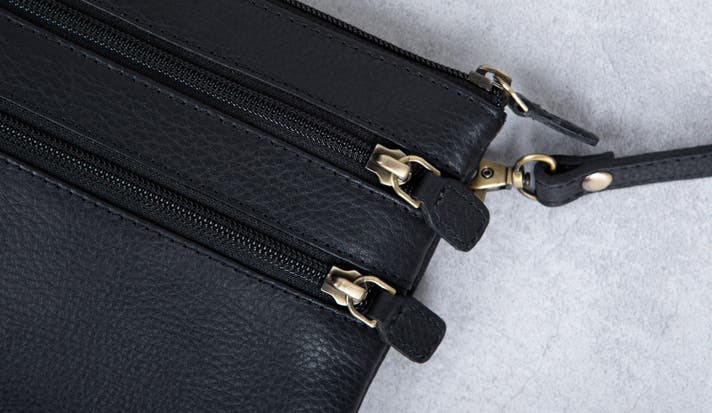 外部からアクセスしにくい設計のファスナーが採用されています。バッグの中身を安全に守りつつ、デザイン性も損ないません。