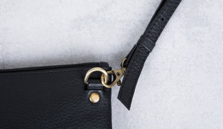 ファスナーの不意の開閉を防ぐストラップで、収納物の落下の防止にも最適です。