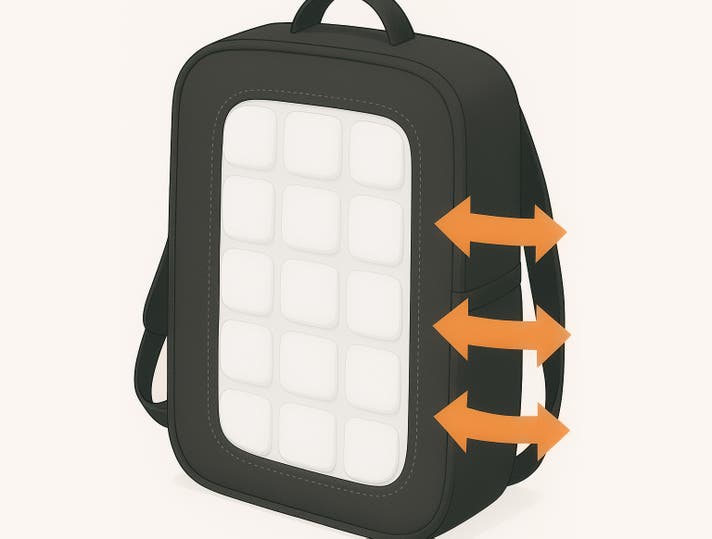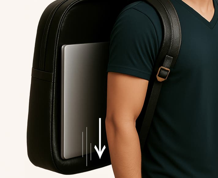 ノートPCなどの精密機器をしっかり守りながら、背中全体にかかる圧力も分散させ、身体への負担を軽減します。