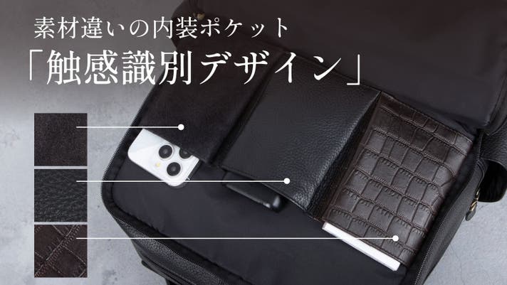 - 素材違いの内装ポケットで、感覚的に物の場所を把握できる「触覚識別デザイン」を採用。