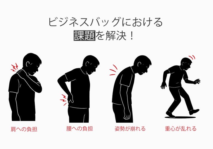 単なるデザイン性だけでなく、科学的なアプローチで「快適さ」を証明済み。今までのビジネスバッグとは一線を画す、新たな快適性をぜひ体験してください。
