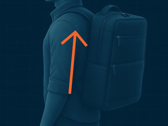 背面にPCポケットを配置する独自構造により、重たい荷物の重心が垂直方向にかかりやすく、体の軸がぶれにくくなります。