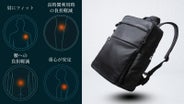 PCポケットを背中側に配置する独自構造を採用。これにより荷物の重心が身体の軸に近づき、歩行時のバランスをサポート。比較対象の鞄と行った姿勢解析試験では、本製品のほうが姿勢の乱れが少ないという結果が出ました。