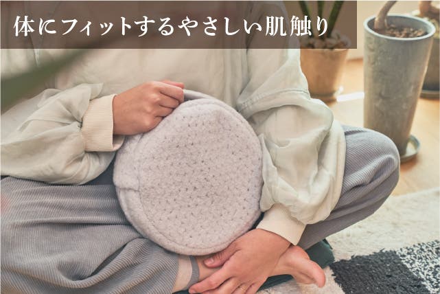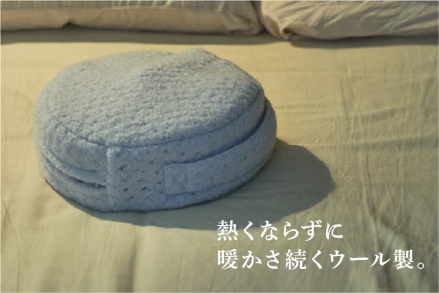 - チャック付きの専用ウールカバーで体にフィット、熱くなりすぎず温かさ長時間キープ。