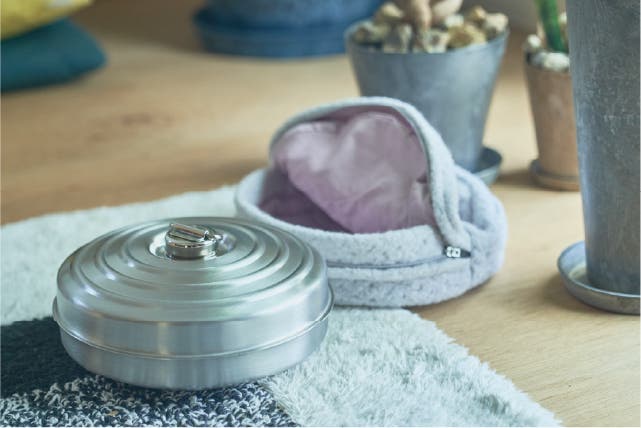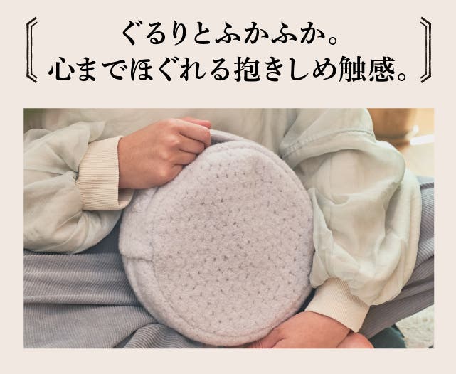 手足やひざ、おなかに置いておけば体をじわーっと温めて、少しだけエコに暖をとれたり、ひざに抱えた上にブランケットをかけると、一人用コタツのように楽しむことも。ウールの柔らかさで、肌に触れていても気持ち良い「100年湯たんぽ」は、生活のどんなシーンでも優しくあなたを温めます。