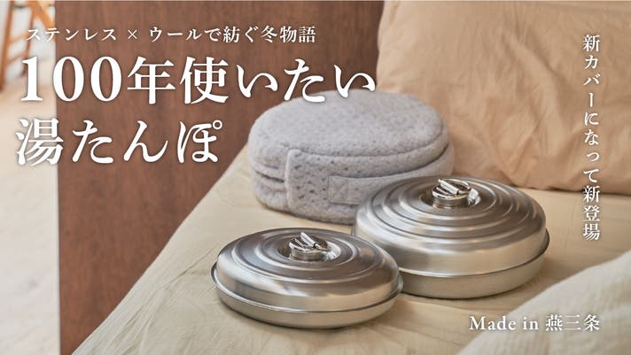 「Makuake(マクアケ)」は、実行者の想いを応援購入によって実現するアタラシイものやサービスのプラットフォームです。このページは、 プロダクトカテゴリの 「暮らしに、心に優しい温かさを。燕三条の技術で作る100年湯たんぽ|新カバー登場」プロジェクト詳細ページです。