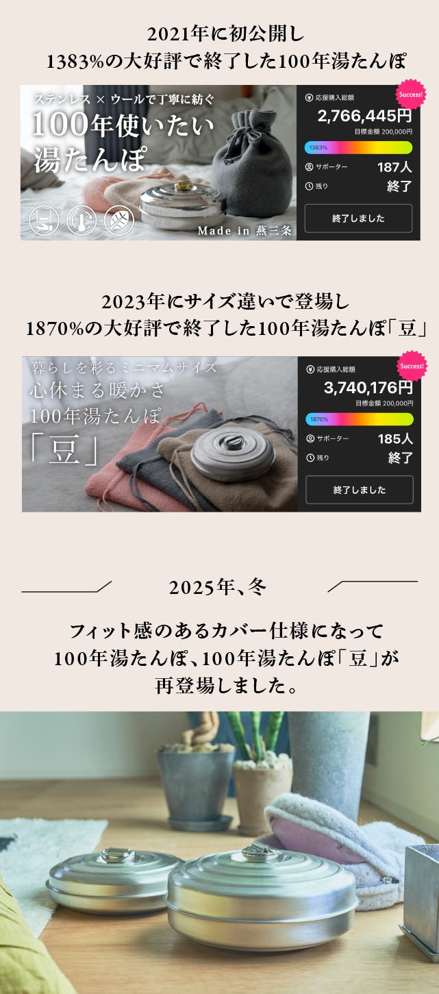 この「100年湯たんぽ」が皆様の暮らしを少しでも豊かに、心地よくできることを目指し、精一杯製造に励んでまいりますので、応援の程、何卒よろしくお願いいたします。