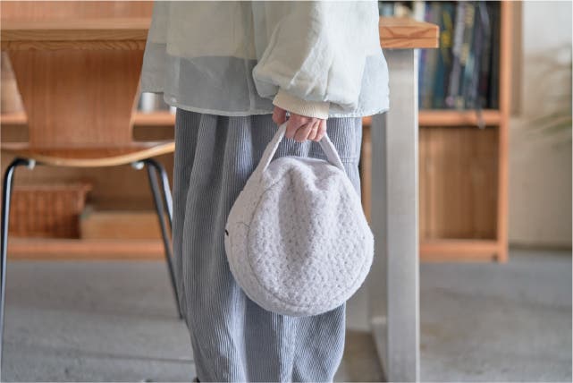 燕市近隣の「見附市」で作られるカバーは、ふっくら肉厚でやわらか。飾り編みを圧縮することで、繊細な模様が現れます。密度の高く厚い生地なので、高い保温性と耐久性を両立しました。