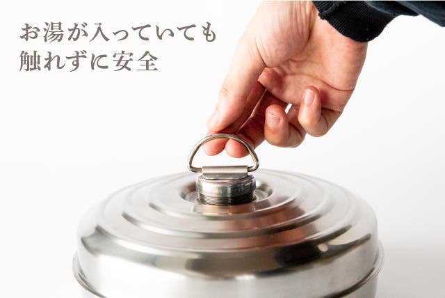 フタには取っ手を付け、熱湯を注ぐときも安心。