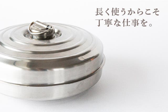 食器にも使われる耐久性の高い金属で、本体の上下を溶接で丁寧に仕上げ、水漏れを防ぎます。
