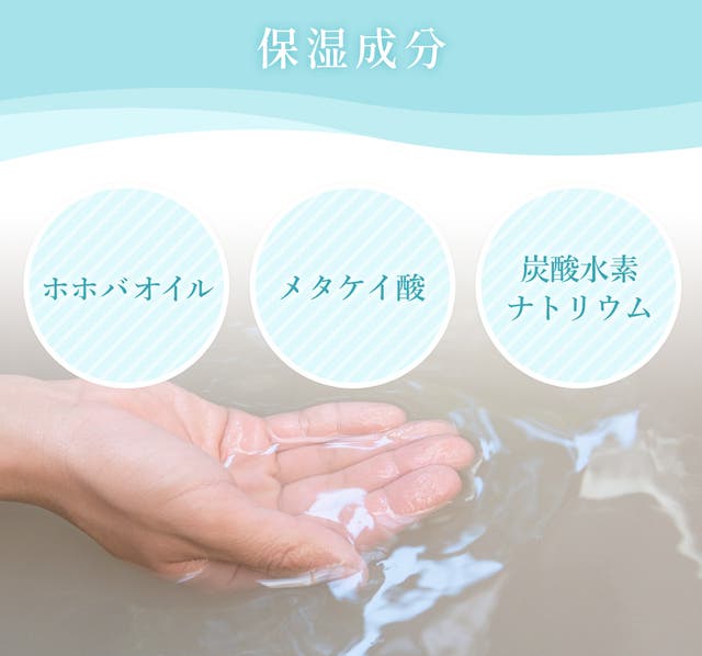 温泉の保湿成分の1つである「メタケイ酸」や普段多くの方が愛用されている「ホホバオイル」の3つの成分を配合。