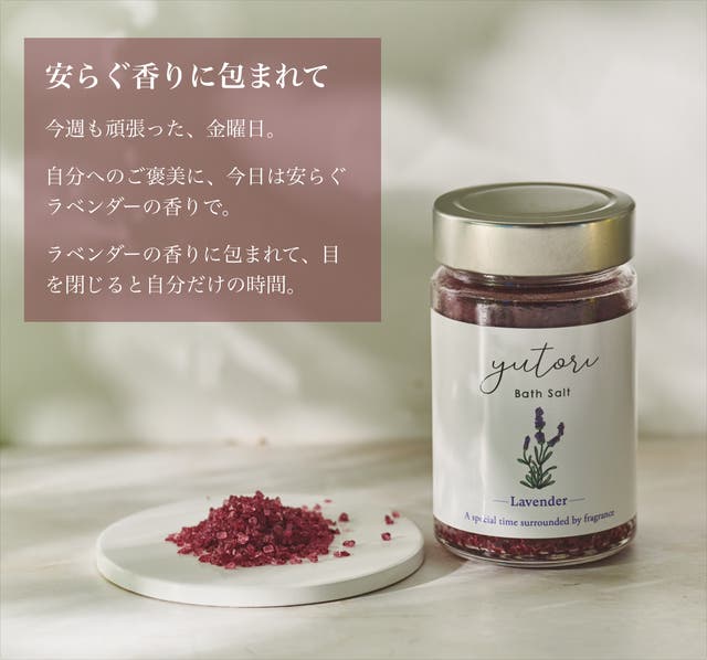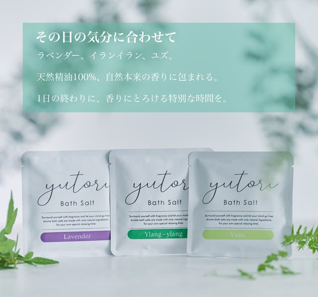 yutoriのバスソルトは、天然精油を香水発想でブレンドすることで、いつものお風呂をより豊かで価値のあるものにできると考えています。