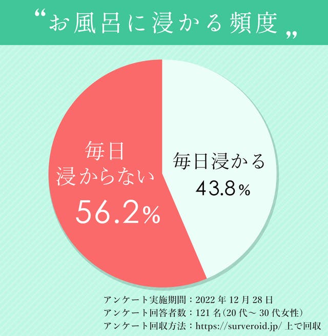 実際に、yutoriが独自で調査したアンケートでは、毎日お風呂に浸かっていない人は実に「56.2%」。