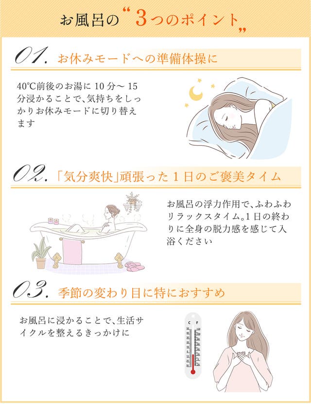 1日の最後を締めくくる入浴時間を上質な香りと共にお過ごしください。