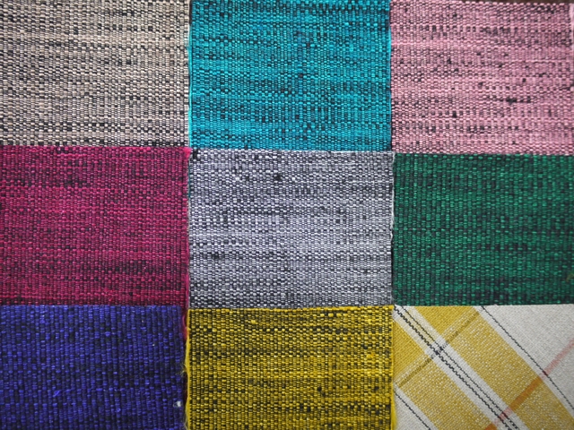 「本場結城紬の色」は、上画像左上から①思川桜染め、②ターコイズ、③ピンク、④ワイン、⑤ グレー、⑥グリン、⑦パープル、⑧イエロー、⑨イエローチェックの9色からお選び下さい。おすすめ①の思川桜染めは、栃木県小山市の花、思川桜の枝を煮出し抽出した液で染める草木染で淡いピンク色の紬を横糸に縦糸を黒糸で織り上げた特注品です。