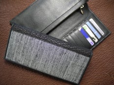 ■「本場結城紬」とサメ革長札入れ