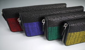 ユネスコ無形文化遺産「本場結城紬」サメ革 ラウンドファスナー束入れ