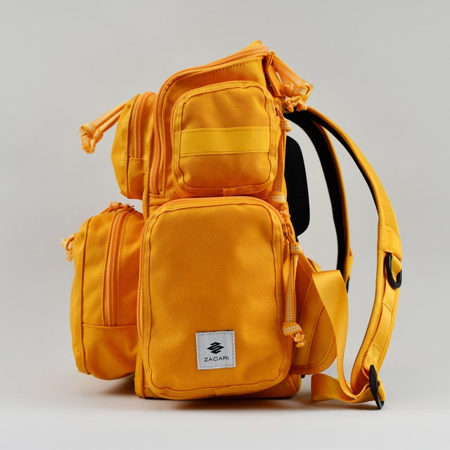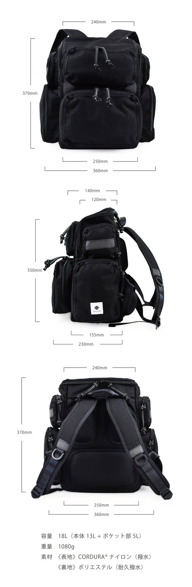 大きさの異なるアウトポケットを正面と側面に計6つ配備した高い収納力と利便性が特徴