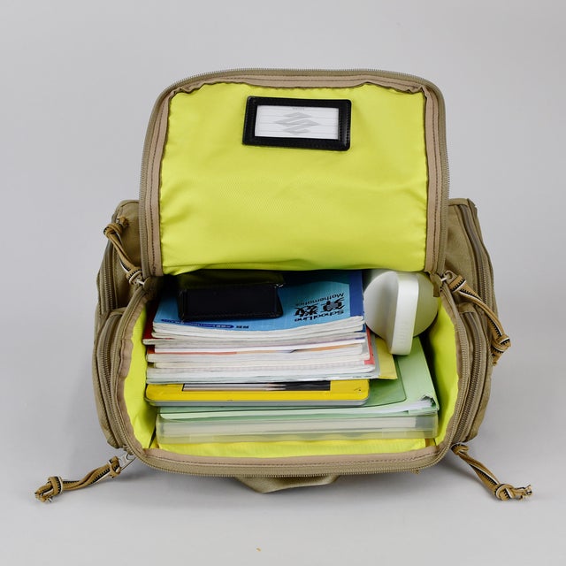 かぶせのないファスナー式の天部はランドセルよりも開口部が大きく荷物の出し入れも快適で、歩きながら荷物を取り出すことも可能