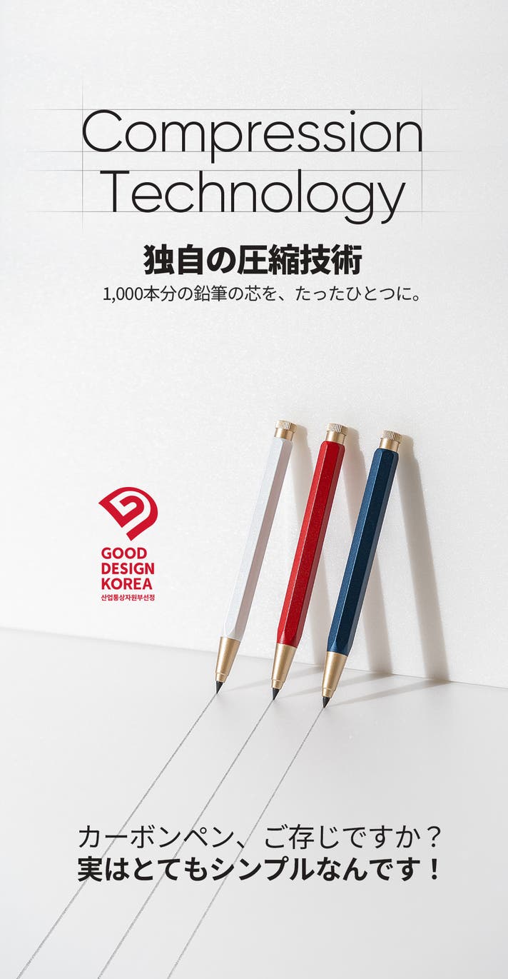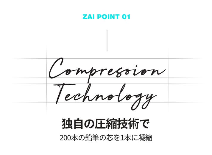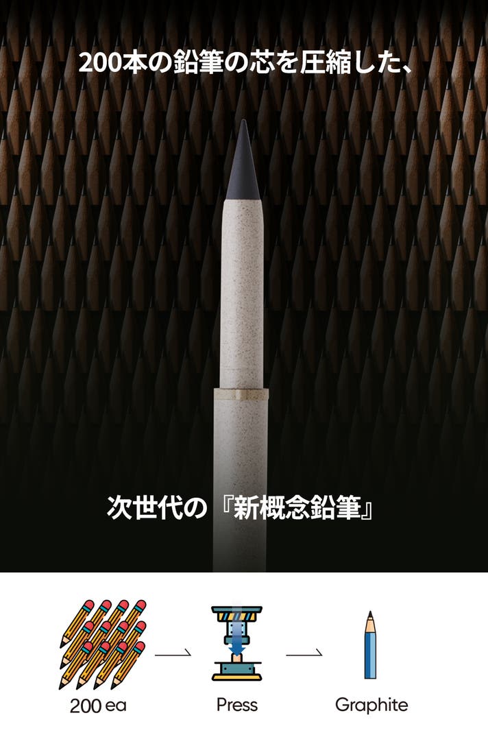- 独自の「圧縮技術」により、200本/1000本の鉛筆の芯をギュッと凝縮!